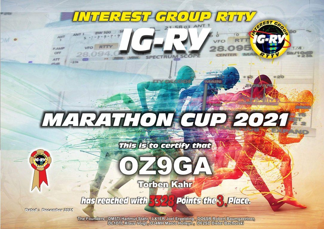 As an additional incentive for RTTY operation the IG-RY started in 2018 a Marathon Cup for its members.